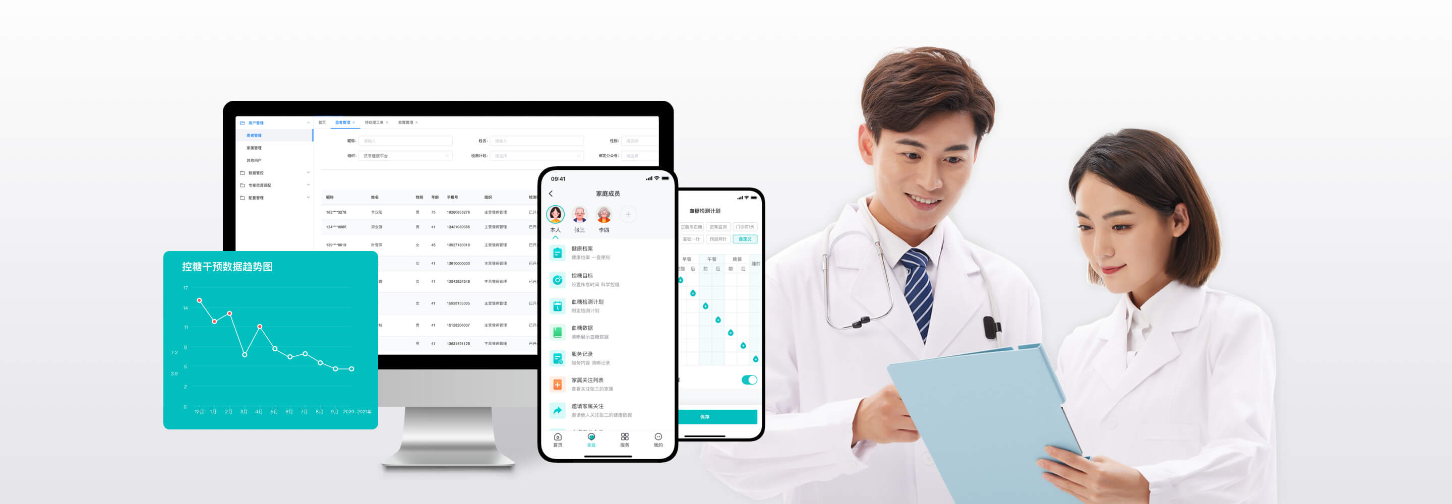 旗下「喜悦慢病管理平台」整体解决方案是借助于5G血糖仪、血压计、智能穿戴设备、蓝牙体脂秤等多种物联网硬件设备,基于对设备数据的云端计算及智能分析,利用医疗大数据算法帮助医疗服务团队及专业健康管理服务团队更有效率服务患者,针对患者检测的异常数据进行及时反馈、跟踪、干预,实现上医治未病。使用户及患者及时对疾病进行预防及管控,获得实时的专业指导以及专属综合治疗方案;真正意义上提供有效及实时的健康管理服务,搭建基于患者家人+患者本人+健康服务机构+医疗服务机构的共管机制。